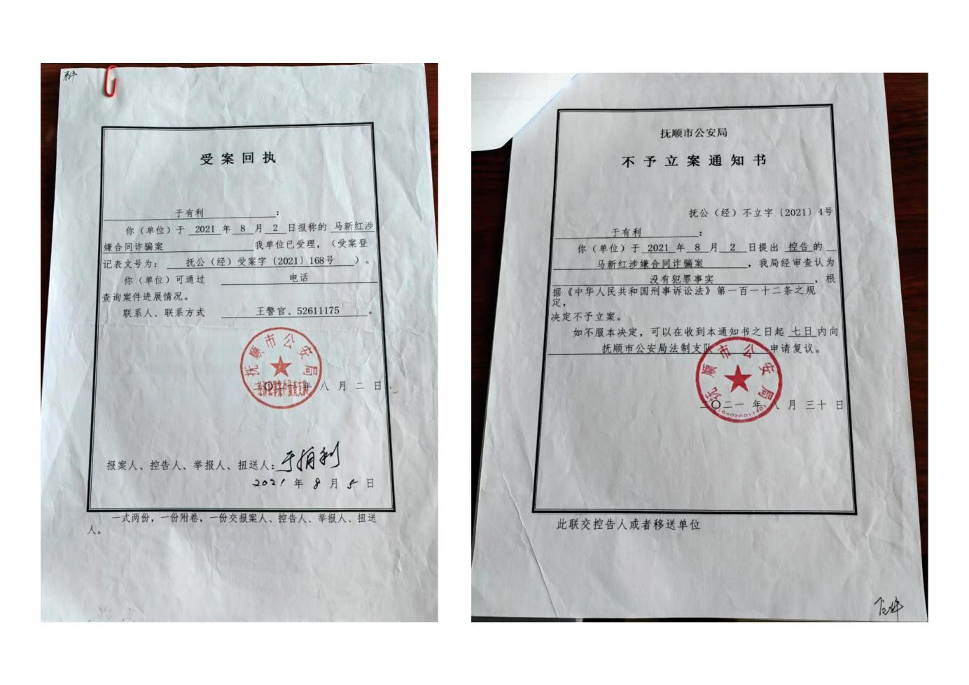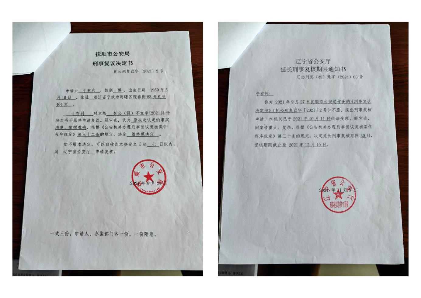 盼彻查司法腐败及保护伞 近期,年逾古稀的75岁老人于有利通过网络媒体反映其在“雷锋精神的故乡”辽宁省抚顺市遭遇上亿元巨额连环诈骗,向抚顺市公安局报案已四年多,公安局已刑事立案三年多,抚顺市公安局、抚顺市新抚区人民检察院等相关办案单位、办案人员及其领导互相推诿,不作为,严重超期办案,对犯罪嫌疑人一直未采取拘留逮捕措施,也不去查封冻结扣押赃款赃物,被骗资金连一分钱都未追回,涉嫌办案不力、有罪不查、重罪轻查、玩忽职守、滥用职权、失职渎职等诸多问题,甚至不排除其中有包庇纵容、徇私枉法等司法腐败及司法保护伞的问题。 于有利因案件长期拖延,身心疲惫,加上犯罪分子一直逍遥法外,气郁愤怒,因此患上焦虑症和抑郁症,需长期治疗,于有利在病床上希望通过媒体的报道,能够引起最高人民检察院、辽宁省纪委监委、辽宁省政法委、辽宁省人民检察院、辽宁省公安厅、辽宁省营商环境建设局、抚顺市纪委监委、抚顺市人民检察院、抚顺市公安局主要领导的重视,能从讲政治、讲法治的高度妥善处理好此事,对其反映的问题进行查处,并予以纠正,替他讨还一个公道,于有利愿意对相关内容的真实性负责,如有不属实的,愿意负法律责任,与他人无关。 于有利提供的事实与理由: 我是于有利,今年75岁,浙江宁波人,一直从事经商和投资。因为儿子战友的关系,与抚顺市马新红(犯罪嫌疑人)结识,她劝我在抚顺市当地投资,我想这里毕竟是“雷锋精神的故乡”,心里还是有些安全感的,却不料遭遇对方巨额连环诈骗,使我遭受上亿元的损失。2021年8月我向抚顺市公安局经侦支队报案,经侦支队初查后却以“没有犯罪事实”为由不予立案,我再向抚顺市公安局复议也是维持不予立案,2021年10月我向辽宁省公安厅提起复核,同时向新闻媒体反映了情况,他们也帮我先后向辽宁省政法委、抚顺市委宣传部、抚顺市营商环境建设局做了投诉和呼吁,才引起了各方重视。辽宁省公安厅因案情重大、复杂,延长复核期限,2021年11月辽宁省公安厅复核后撤销抚顺市公安局原先维持不予立案的行政复议决定,随后抚顺市公安局撤销原不予立案行政决定,但直到时任抚顺市公安局局长(现辽宁省公安厅副厅长)雒荣广批示后,才于2022年6月对马新红涉嫌合同诈骗重新立案,抚顺市公安局经侦支队专门成立专案组查办此案,并曾让抚顺市新抚区人民检察院提前介入阅卷近一年,但直到2024年4月才对马新红采取监视居住措施,2024年6月抚顺市公安局经侦支队以新抚区公安局名义将此案移送新抚区人民检察院审查起诉,期间检察院又两次退回补充侦查,公安局补充侦查完毕后,再次移送检察院审查起诉,期间,辽宁省公安厅组织队伍对此案进行评查,并提供了意见。 2024年12月,在案件处于刑事诉讼审查起诉阶段,许多证据根本不能公开,而抚顺市新抚区人民检察院竟然召开听证会,结束后,检察院以证据不足为理由决定对犯罪嫌疑人马新红不起诉,案件终结。但随后给侦查机关出具继续侦查提纲,抚顺市公安局经侦支队也称案件没有结束,仍要继续侦查,并重新组织人员成立新的专案组。