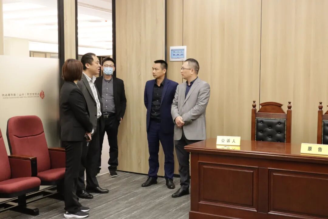 京师中山律所执行主任黄文忠,监事会主任、公司治理与企业法律顾问部主任幸泽胜,公司治理与企业法律顾问部成员袁慧婷律师、李倩盈实习律师对中山报业传媒股份有限公司一行的到来表示热烈欢迎,并陪同大家参观了我所办公环境,重点介绍了党建文化长廊、侨联文化墙、京师代理重大案件展示区、律师办公区、客户服务中心、健身房、瑜伽室以及模拟法庭等。